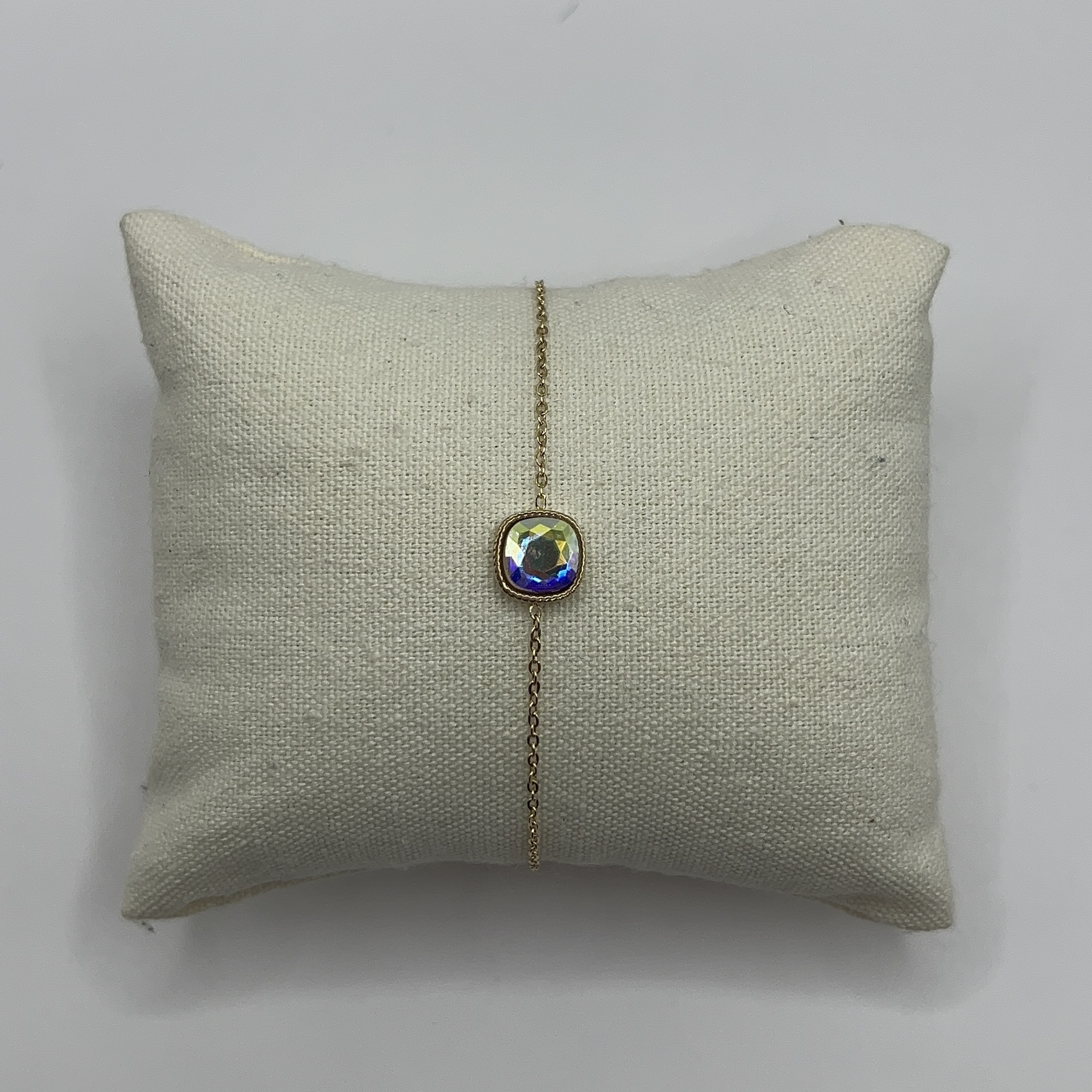 Bracelet en acier inoxydable composé d’un cristal taillé carré.