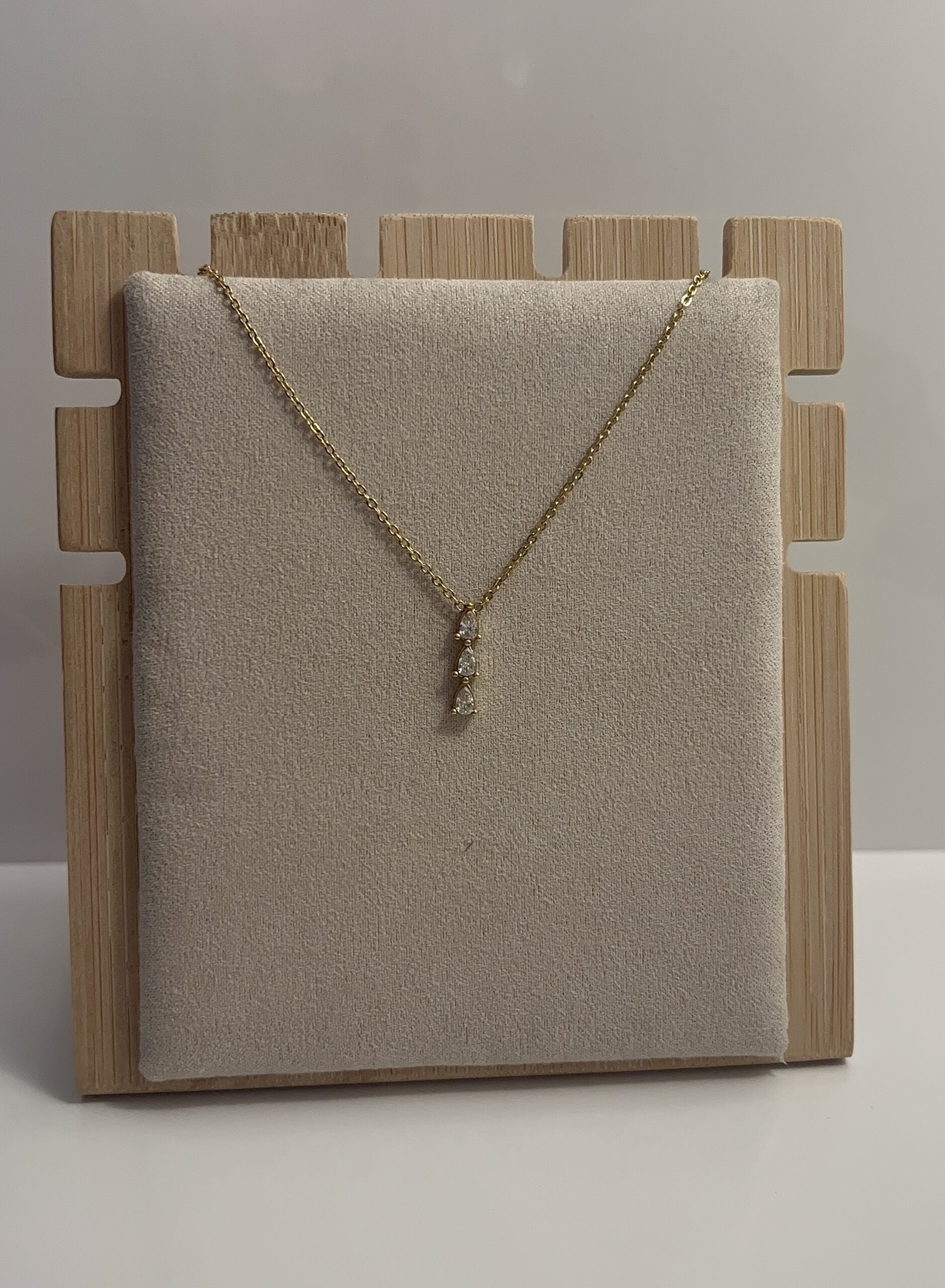 Collier en acier doré orné de trois strass alignés.