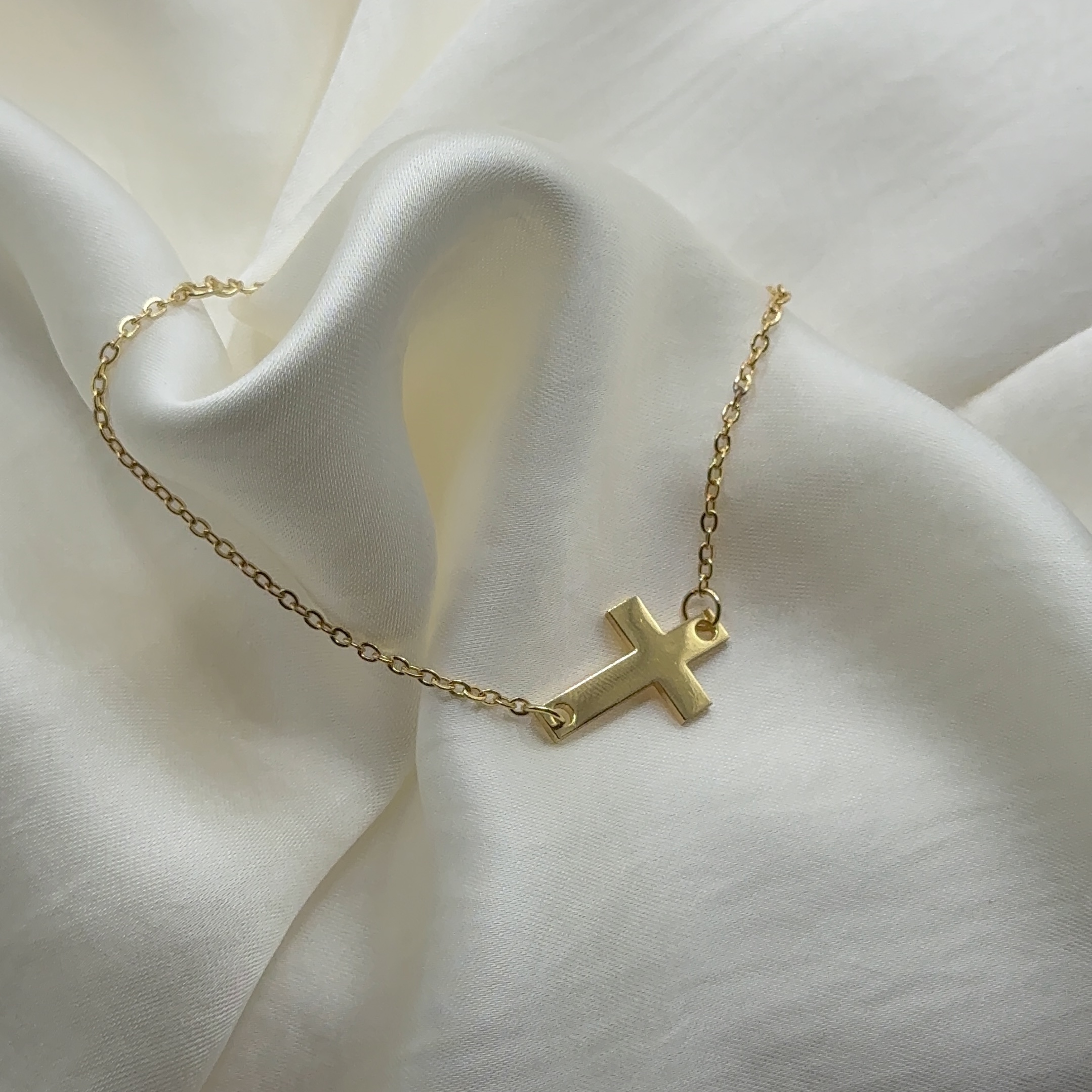 Bracelet fin en acier doré, orné d’une croix délicate, pour un style minimaliste et élégant.
