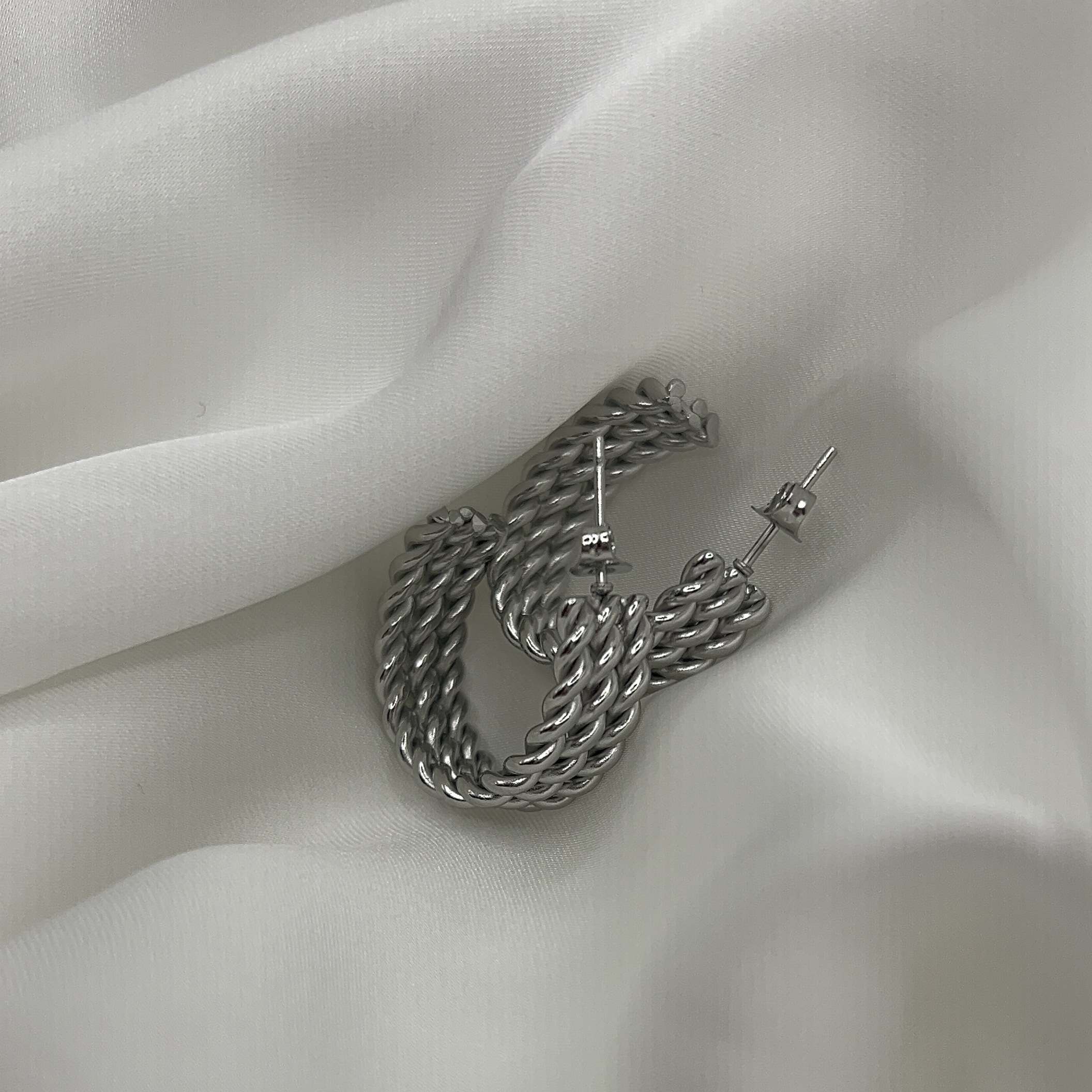 Ces créoles en argent tressé allient élégance et originalité, offrant un design raffiné et intemporel qui complète parfaitement toutes vos tenues.