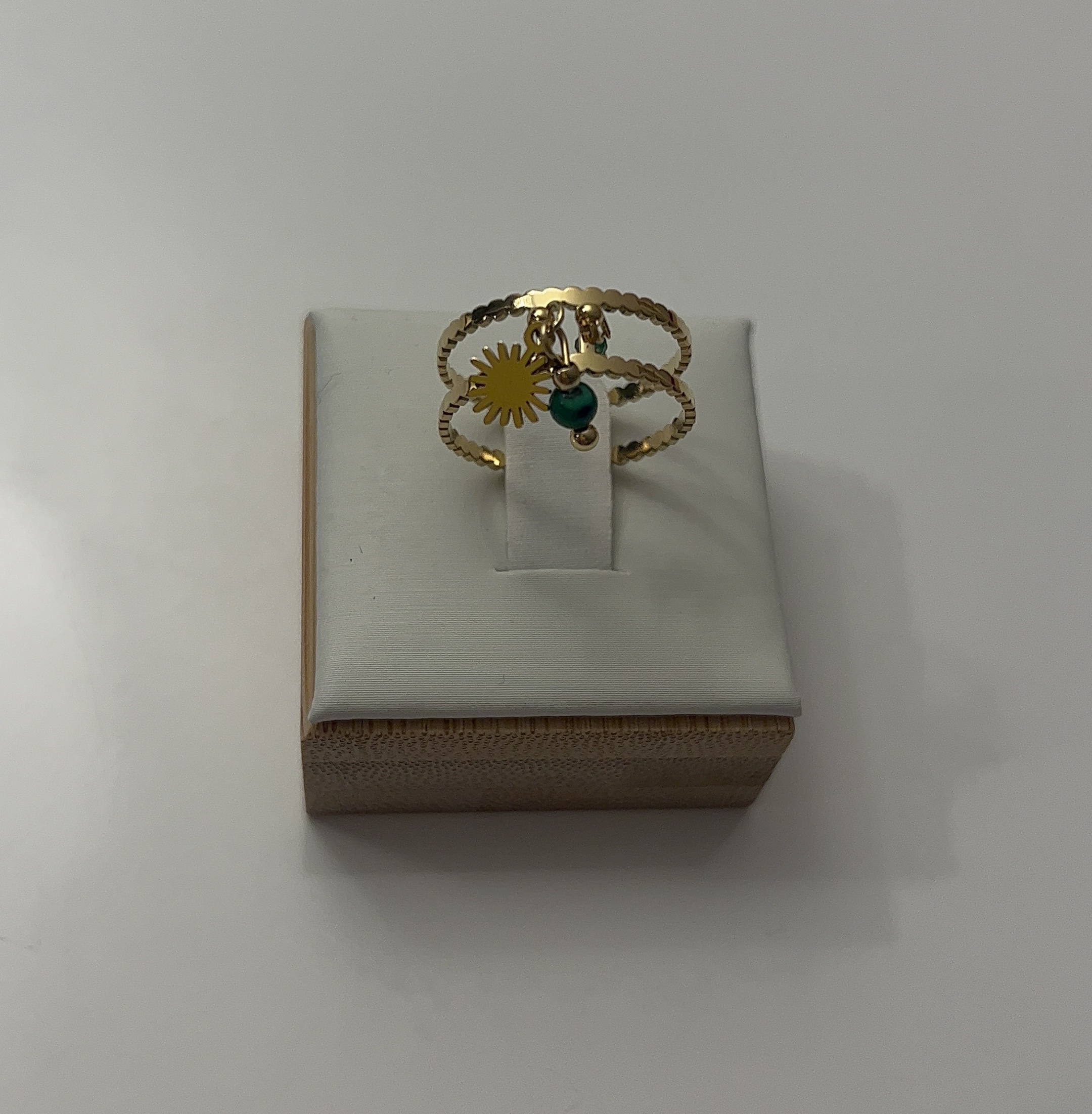 Dorée et en acier inoxydable, cette bague breloque offre un style élégant.